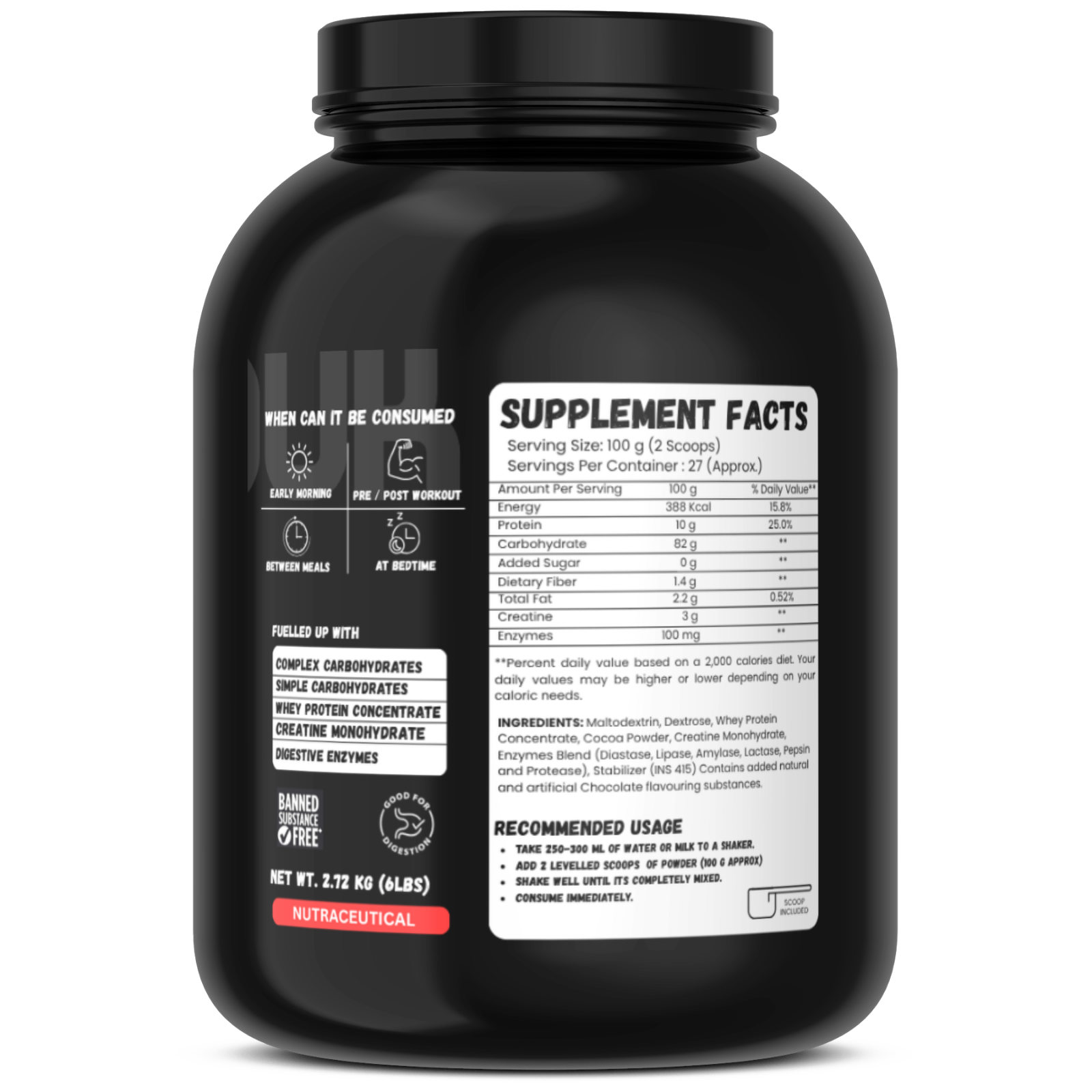 To support serious muscle development, Whey Protein Concentrate is included as the primary protein source. Rich in essential amino acids and BCAAs, it helps stimulate muscle protein synthesis and repair microtears caused by intense workouts. It’s fast-digesting, making it ideal for post-workout consumption.
