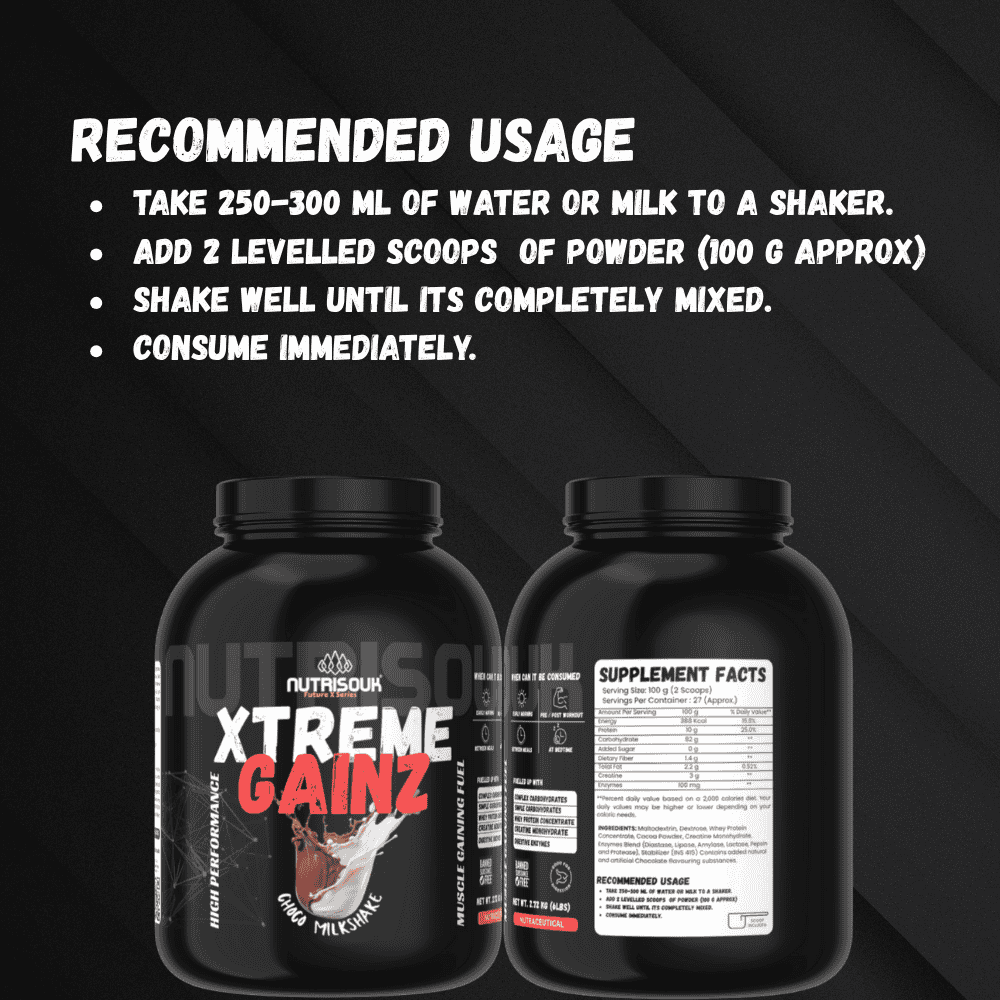 Whether you're bulking up, increasing strength, or accelerating post-workout recovery, Nutrisouk’s Xtreme Gainz is your all-in-one solution. Engineered with precision and packed with power, it’s time to transform your training with clean, effective gains.
